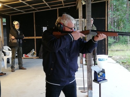Vi bor i et område der jakt er en stor hobby for mange. Så denne mandagskvelden fikk vi god hjelp av Leirduegruppa til Grue Jeger- og Fiskeforening. Vi fikk prøve oss med hagle på Lleirduebanen, Tjura.